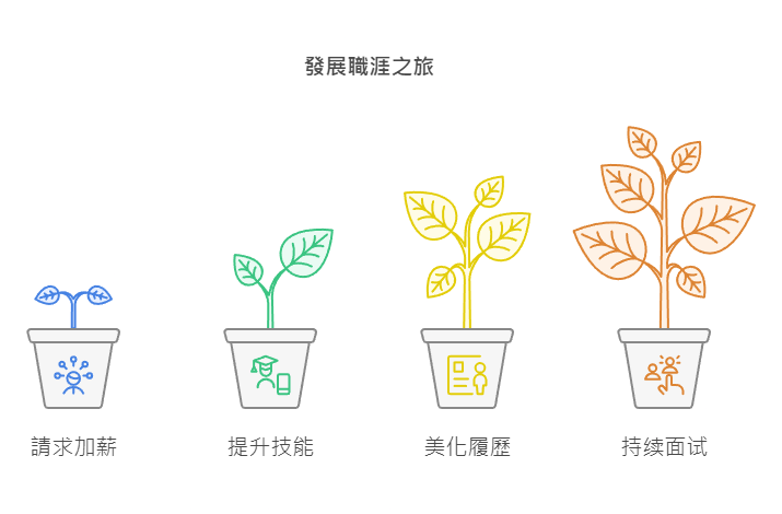 - 提升橫向技能:跨領域發展,比如做行政的可以挑戰做業務,做業務的可以強化行政能力。擁有越多跨域能力,越有可能成為不可替代的員工,理想的情況是具備業務、行政、管理與溝通 4 種跨領域技能。假如一個人能同時勝任不同領域的任務,老闆可能願意付 1.5 倍薪水留住這個跨域人才,而不必用 2 倍薪水僱用兩個人。