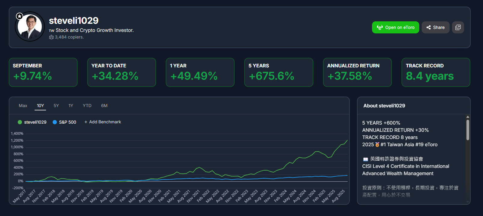 這篇文章專門為在 eToro 跟單的朋友而寫。(Steve Li 的個股投資績效圖)