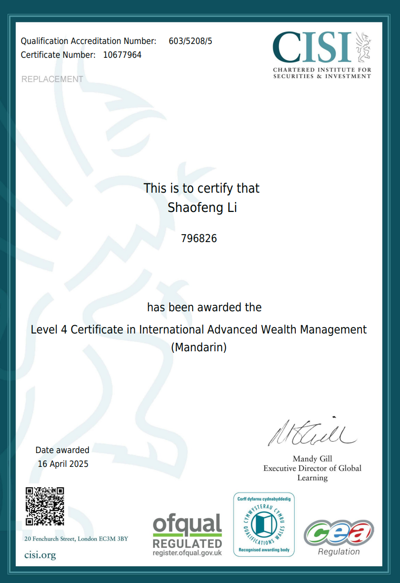 2025 年,我通過英國 CISI 財富與投資管理 LV4 認證,成為 eToro 全球僅 10 位 Elite Pro 投資人之一,也是台灣唯一獲此殊榮的頂級經理人。