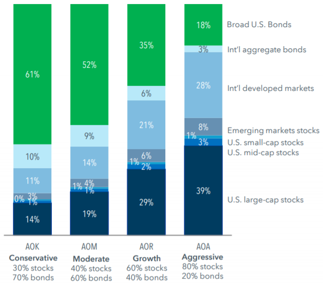 從 iShares 官網圖片可以看到,AOA 有另外三個家人,依股債比例分別為: