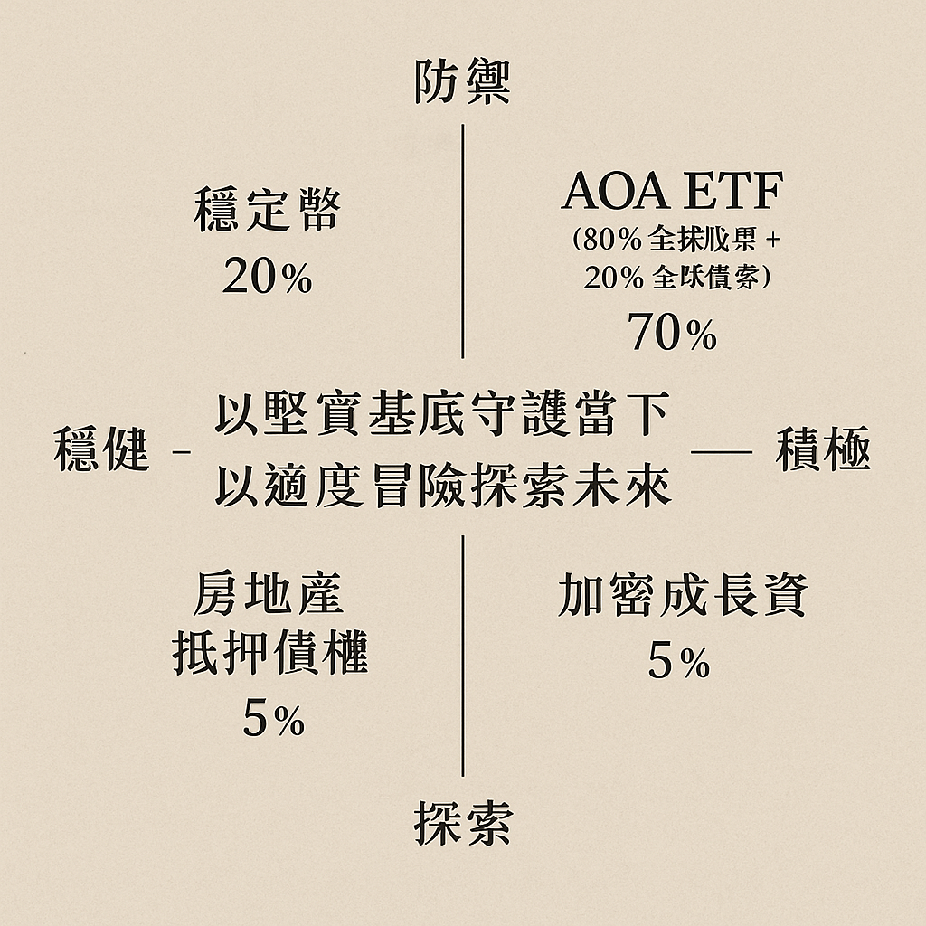| AOA ETF(全球股債80/20) | 70% | 穩健成長主體,兼具防禦 |