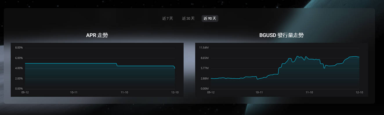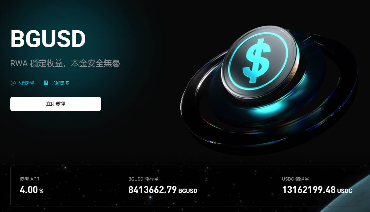 這些傳統金融資產的特性是低波動、高信用,因此能為 BGUSD 提供相對穩定的年化收益率(APR)。