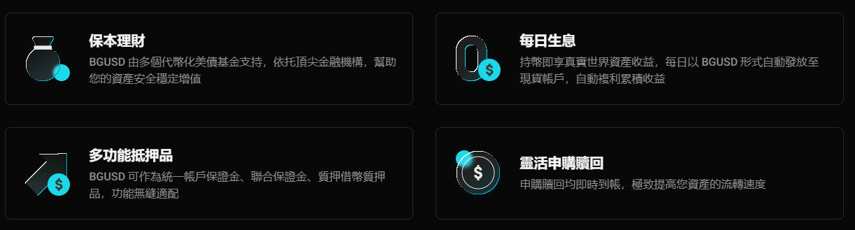 BGUSD 的設計目的,是為用戶提供一個穩定、自動化生息的美元理財工具。