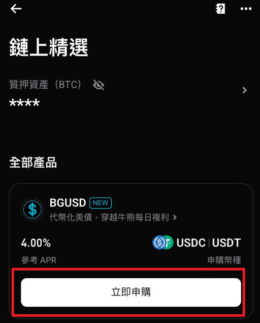 - 在理財清單中,找到標註為 BGUSD 收益項目。