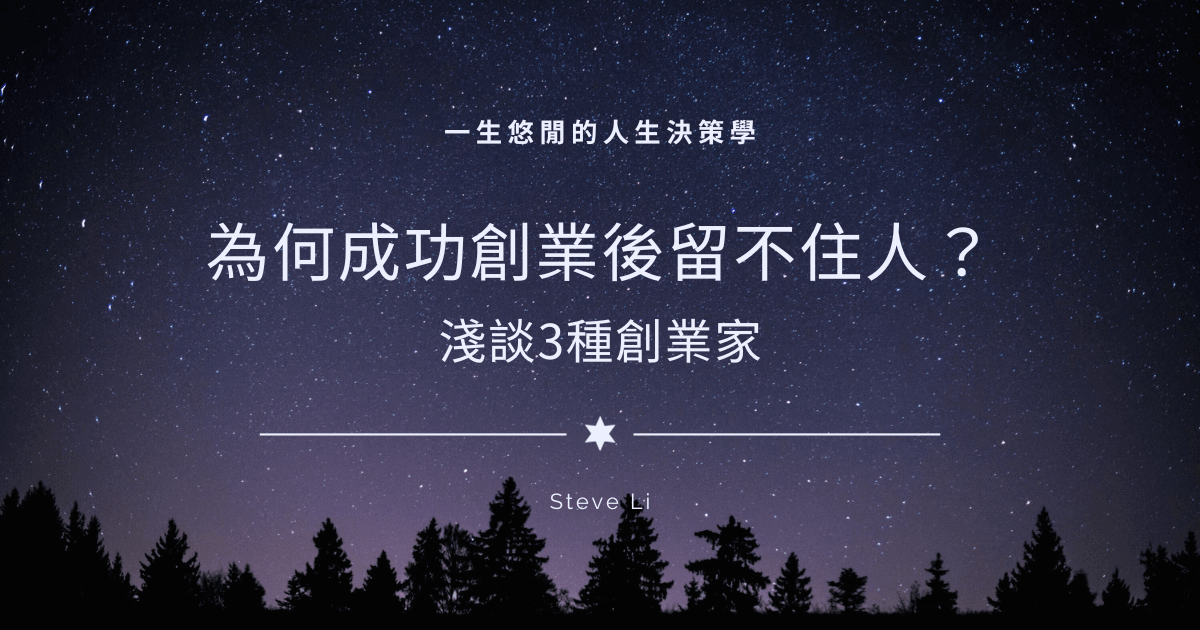 為什麼成功創業後留不住人?淺談3種創業家 2023/09/03 | 未分類 我覺得創業有從「0到1」到「1到10」,再到「10到100」的階段,企業在不同階段需要不同的管理能力和策略,也需要不同類型的創業家來營運。 為什麼成功創業後留不住人?淺談3種創業家 完整文章 »