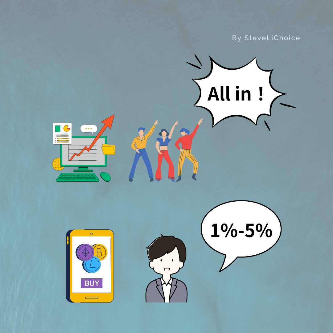 如果我們用極低的資產比例,放在加密貨幣上,會比看好一家公司然後 All in 安全許多,也比較有機會翻身致富。