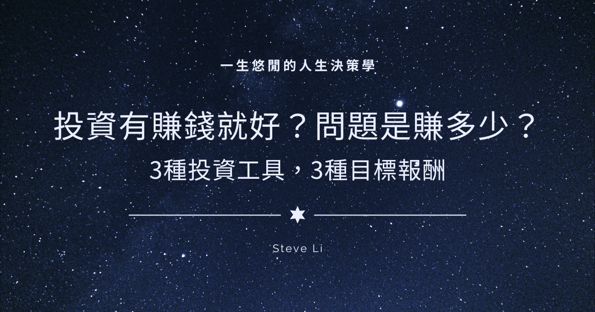 投資有賺錢就好?問題是賺多少?3種投資工具,3種目標報酬 完整文章 »