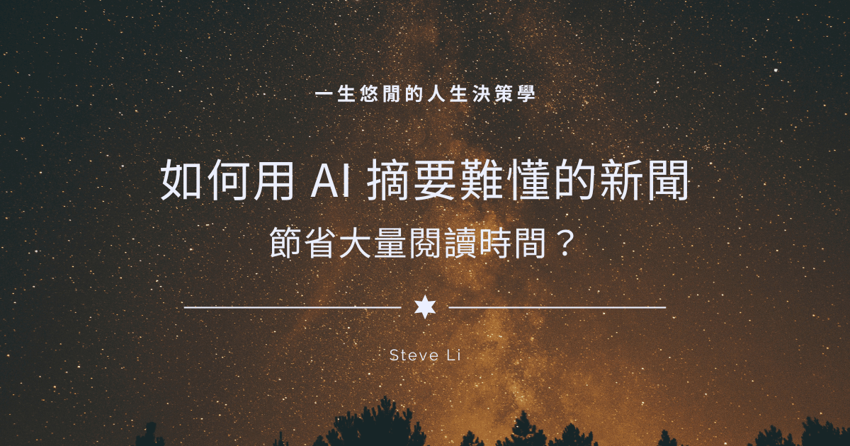 如何用 AI 摘要難懂的新聞,節省大量閱讀時間? 完整文章 »