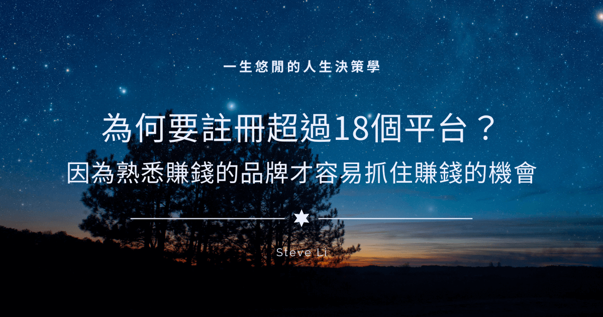 為何要註冊超過18個平台?因為熟悉賺錢的品牌才容易抓住賺錢的機會 完整文章 »