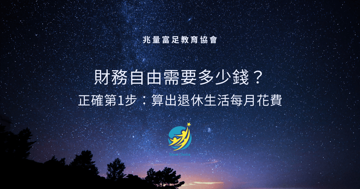 達成財務自由的第一步,是先算出每月需要多少錢,然後再反推來計算最終需要累積多少資產。