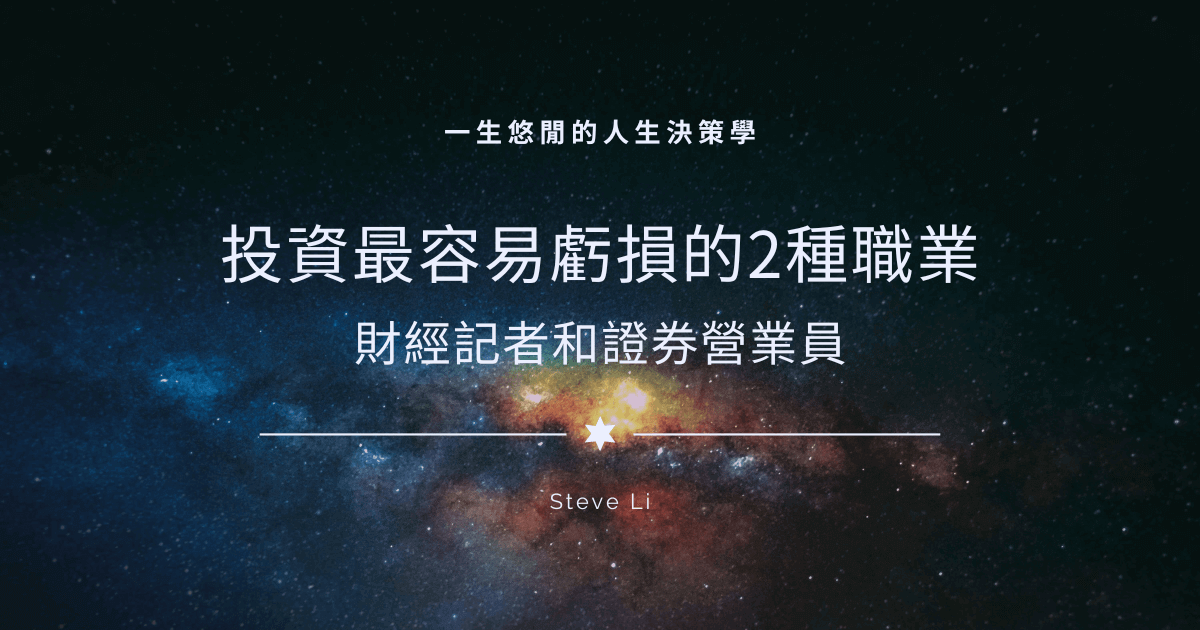由於市場雜訊太多,財經記者和證券營業員(理專)這兩種職業的投資虧損風險確實較高。不過,這並不代表從事這兩種職業的人就一定會投資虧損。