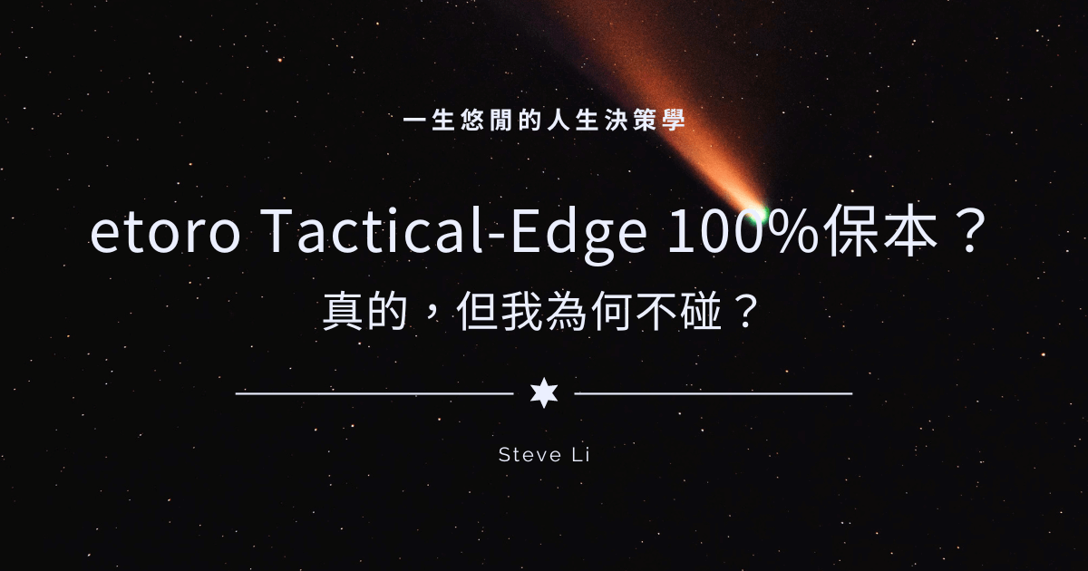 以科技加保本為賣點的 etoro Tactical-Edge,75%由債券組成,加入25%的科技股,預期年化報酬約4~6%,然而對我們的投資目標 8~12% 的助力有限。