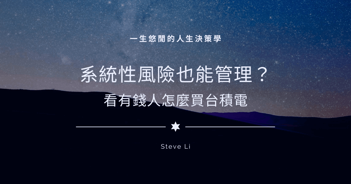 系統性風險也能管理?看有錢人怎麼買台積電 2024/04/10 | 未分類 有些人投資沒有系統性風險概念,例如將資產 All in 在一間蓋在地震帶的房子上;有些人意識到了,卻做出兩種截然不同的反應。 系統性風險也能管理?看有錢人怎麼買台積電 完整文章 »