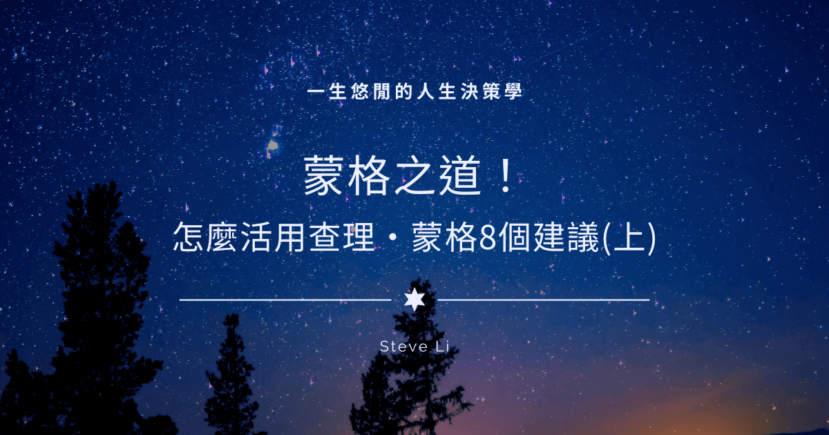 完整的內容可看《蒙格之道》和《窮查理的普通常識》,這兩本書節錄了蒙格許多對話紀錄,是智慧的結晶。