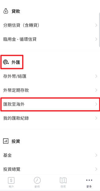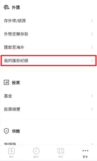 - 往下滑找到「外匯」,點選「我的匯款紀錄」→