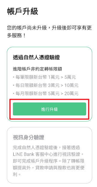 | 進階(第一類) | 非約定轉帳 | 5 萬台幣 | 10 萬 / 20 萬 |