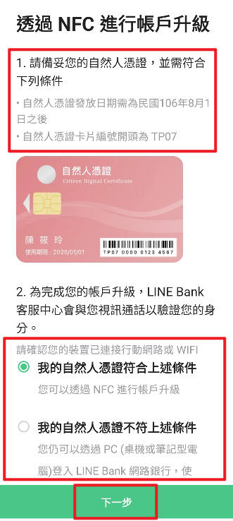 - 與 LINE Bank 客服進行視訊身分驗證。