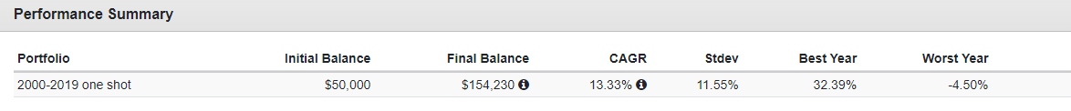 - B組投報率:13.33%,50,000 美元變成 154,230。