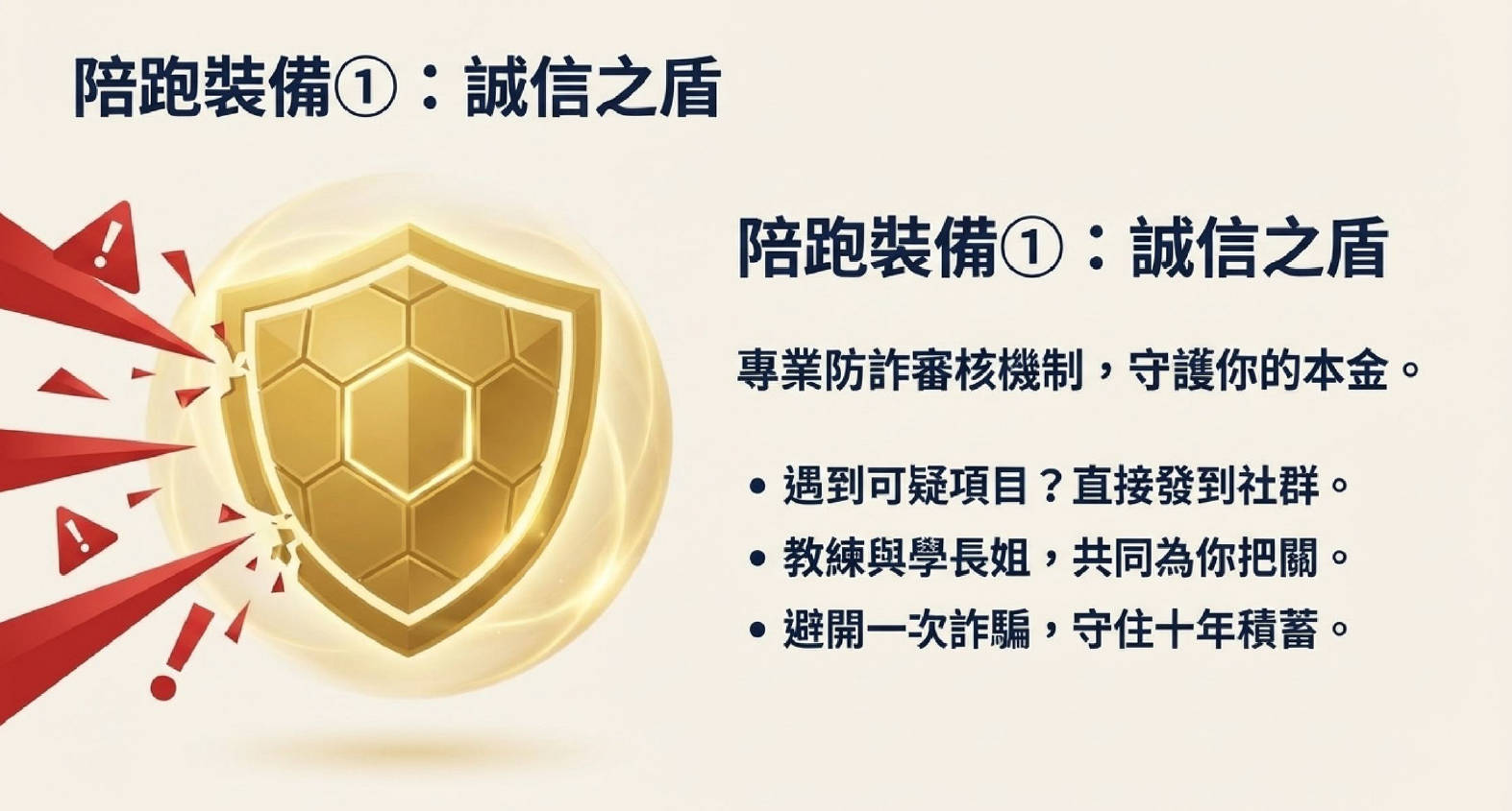 為了協助投資人建立韌性,兆量富足教育協會 於 2026 年 1 月 11 日至 7 月 31 日期間,正式推動 陪跑社群,其定位為學員在市場風暴中的兩大防護指標: