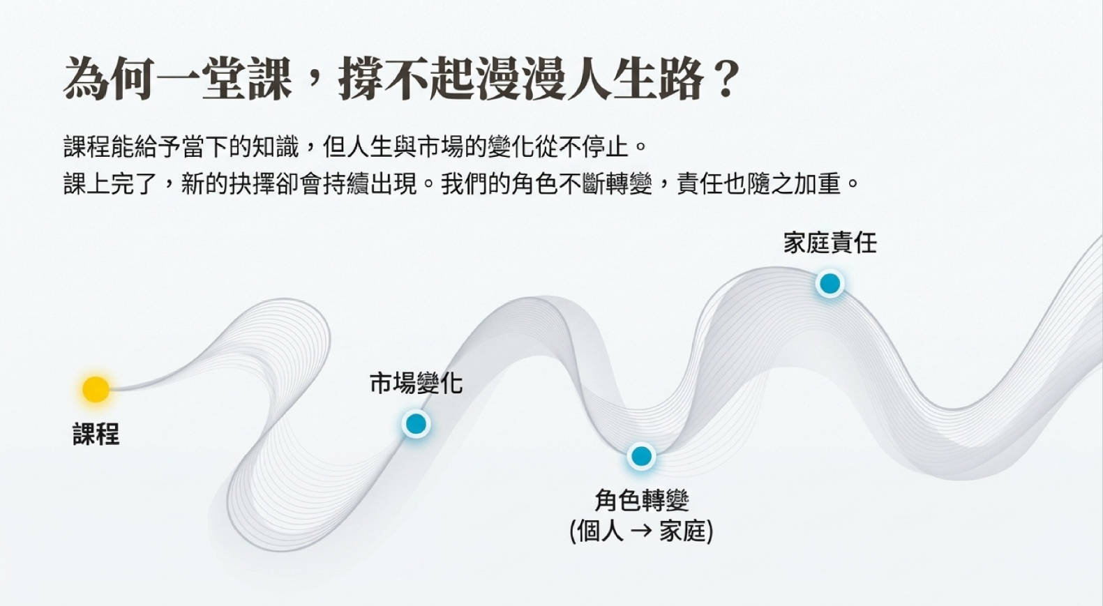 Nike 觀察到,即便學員參與了完整的初階(全球資產配置)至高階課程(Defi),在課後的真實世界中,仍常面臨無法獨自跨越的危機。
