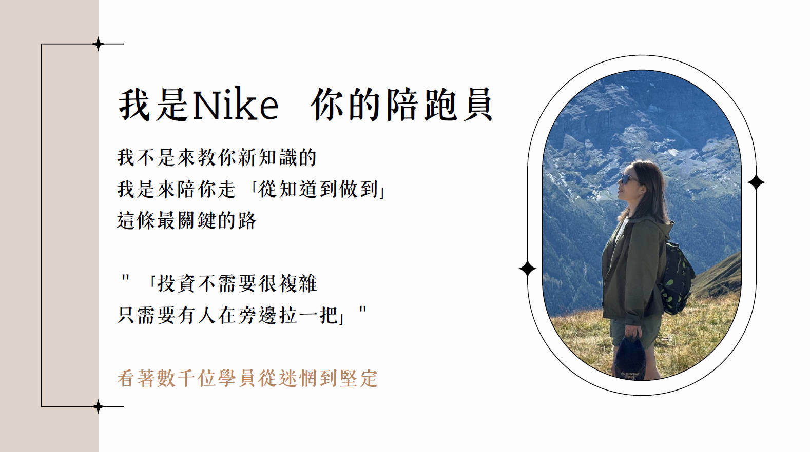 Nike 的分享提醒了所有投資人:理財不只是學習知識,更需要一個能保護你、陪伴你度過市場風雨的環境。