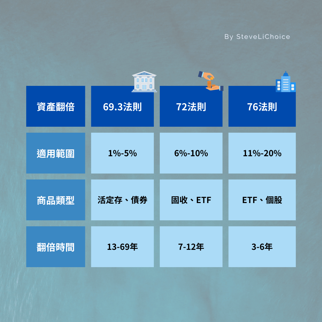 76 / 年報酬率 = 資產翻倍時間(年)