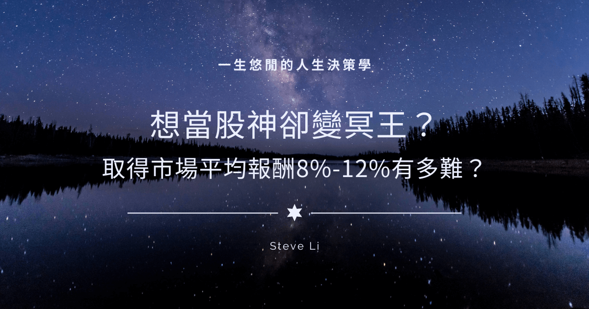 我在學習與實務上一直避免極端案例,不奢望自己有成為股神的技能、也不想成為冥王,只想好好的當個平凡人,藉由簡單的資產配置,輕鬆取得市場平均報酬。