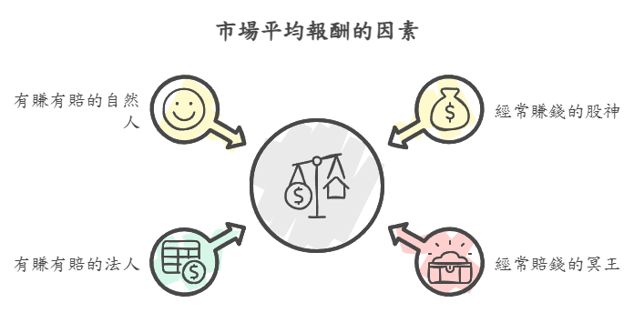市場的平均報酬來源,與多方人馬在股市的角力有關,大致上分為四類: