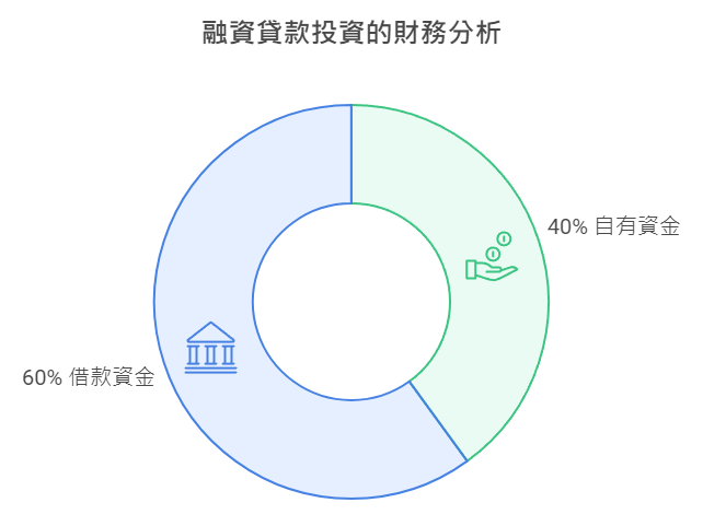 融資保證金最多為 60%,自備款最少為 40%。假設他是以 60% 的融資比例買入,表示有 60% 的錢是借來的,則他的資金比例如下: